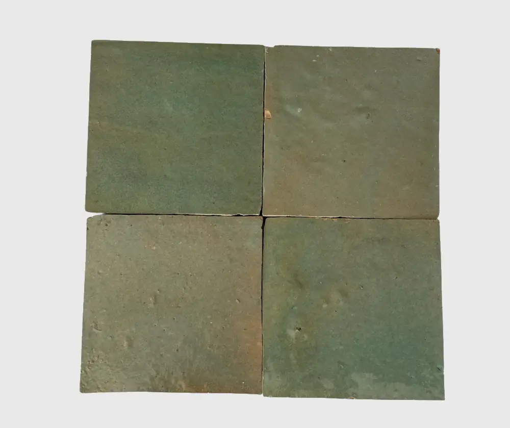 Turquoise Moroccan Zellige 10×10 features a lively green tone with natural handmade variation, ideal for adding freshness to kitchens, showers, and decorative walls. The glaze reflects light softly, giving movement without overwhelming the design. Its square format keeps the layout structured while highlighting the unique character of each tile. Discover more Moroccan Zellige colors and formats in our full collection. Learn more about the history and craftsmanship of Moroccan Zellige.